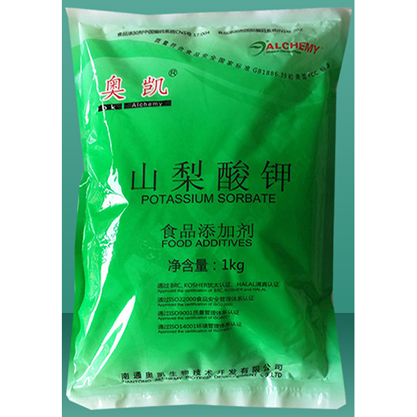 山梨酸鉀為白色條狀,微有臭味,長期暴露在空氣中易吸潮、被氧化分解而變色。山梨酸鉀易溶于水,